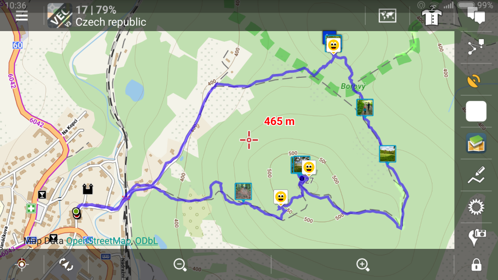 The baby in the backpack seat seems to weigh twice as much when we are struggling upwards the first hill. The geocache named “wedding” is hidden out of the path somewhere under the summit. Locus Map leads us without compromises. Its geocache alarm starts beeping in my pocket 100 meters from the cache and quickens meter by meter. “Daddy, you’re like a ticking bomb“, my sons announce. They’re damn right when I completely exhausted and dripping sweat explode in a hilarious enthusiasm finding the cache. The same at another treasure that was hidden in a rock right next to the church of Our Lady of Sorrows. There are quite remarkable views of the town from there. My alarm starts beeping for the last time on the foot of the neighboring Borovy. Not this time was it hard to find the cache although there were loads of hiding places among the barren boulders. The GPS is relentless and is beeping “zero” perhaps a meter from the cache. I’m logging offline via the Fieldnotes addon while the kids are playing hide and seek among the rocks. Anyway I would seek the GSM signal in vain in this place.