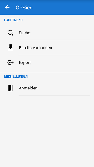 • aus der Detailansicht eines Tracks– wählen Sie einen Track aus dem Datenmanager, tippen sie rechts unten auf das Symbol für das Menü und wählen Sie Export >