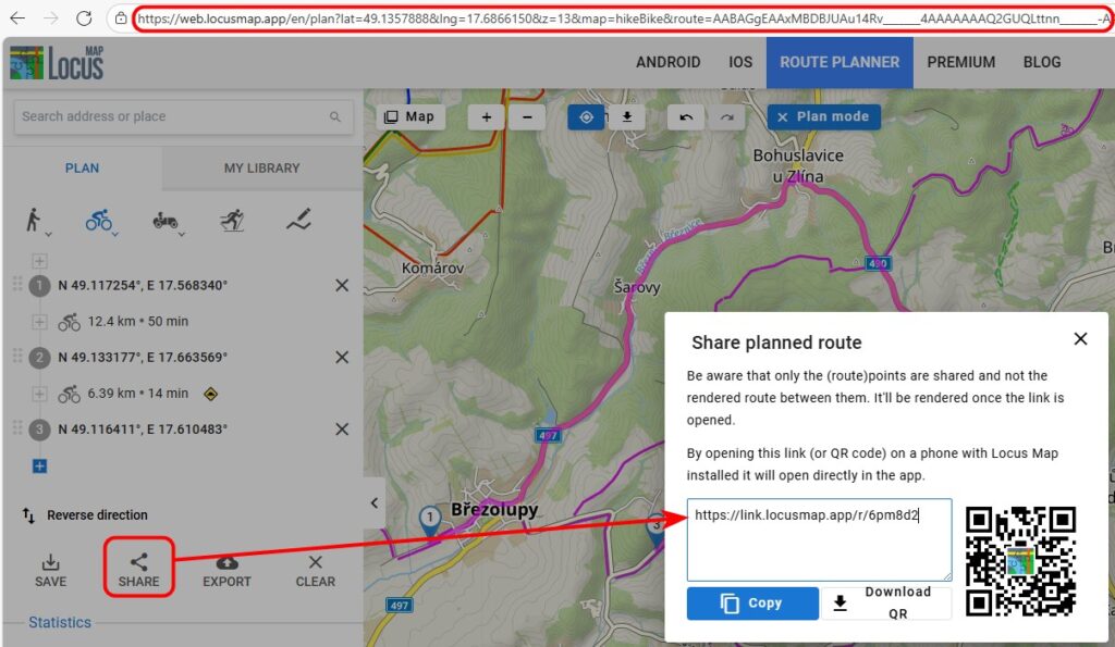 Die Option, Ihre geplante Route über einen URL-Link zu teilen, ist bereits seit einiger Zeit verfügbar. Das Teilen spiegelt nun jedoch auch die benutzerdefinierten Routeneinstellungen wider und bietet zwei Möglichkeiten, den Link zu kopieren: