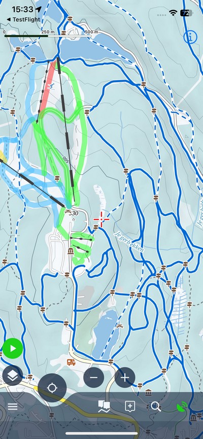 Der Winter naht, daher haben wir der App eine Vektorkarte für Wintersportarten hinzugefügt. Sie enthält Skipisten mit farbcodierten Schwierigkeitsgraden, Skilifte, Seilbahnen und markierte Langlaufloipen. Wie die Sommerversion unterstützt sie nun auch die Textdrehung, um die Lesbarkeit zu gewährleisten: