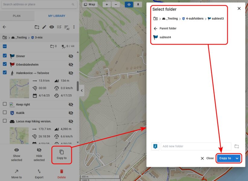 Wir haben auch die Bibliotheksverwaltungsoptionen für Ihre Tracks, Routen und Punkte erweitert. Sie können nun mehrere Elemente gleichzeitig anzeigen, kopieren, verschieben, exportieren und löschen.